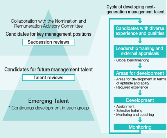 This initiative is driven by a company-wide commitment, with the CEO, Group CEO, regional heads, and HR working together to shape a clear vision of the future leadership talent needed over the next 5 to 10 years and refine the capabilities required to succeed. Based on this, we are matching talent with challenging assignments and cross-organizational rotations so that our talent can enhance the required capabilities. By running a talent review cycle that monitors post-assignment performance, we are steadily cultivating and producing future management talent.