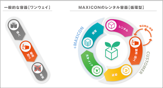 当社グループの物流機能を担う、住商グローバル・ロジスティクス㈱は、マキシコン(MAXICON)と呼ばれる内袋式・折畳式IBC(※)のレンタル事業を展開しています。従来、食品・香粧品業界において流通するIBCの多くが購入・使い捨てタイプであったことに対し、マキシコンは「レンタル式IBC」の先駆け的存在として業界を牽引し、廃棄物を大幅に削減する循環型物流を実現しています。また、一斗缶・バッグインボックス・ドラム缶など小型容器を使用していた企業が、少子高齢化・運賃や包材コスト高騰等による深刻な影響を背景に、作業効率・輸送効率に優れるマキシコンを導入する事例が増えており、小型容器を使わない/捨てないという選択が、資源保全に繋がっています。これからも同社はマキシコンでサステナブルな物流に取り組んでまいります。
